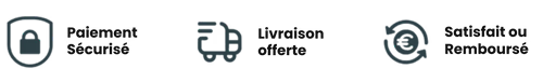 Nous garantissons chaque commande avec notre Garantie de 30 jours. Si vous n’êtes pas satisfait contactez le SAV.